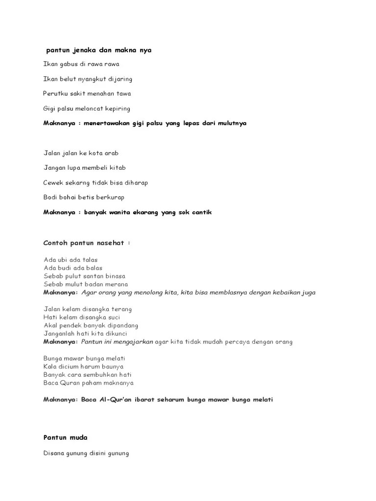 Contoh pantun jenaka nasehat teka teki kiasan dan maknanya, kunci jawaban soal tema 4 kelas 5 sd halaman 45 pembelajaran 6 subtema 1 di buku . Gratis unduh pantun kiasan beserta maknanya rizkya s blog. Maka untuk kamu yang saat ini sedang mendapatkan soal dari gurumu tentang pantun kiasan dan . Hemat kata, pantun adalah jenis puisi lama yang tiap baitnya terdiri atas empak baris serta memiliki sampiran dan isi. Maksud yg terkandung dlm sesuatu perkataan ayat peribahasa ungkapan lambang kiasan dll makna.
